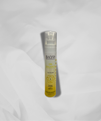 Gel Synergy Complex con alfa hidroxiácidos, ácido biosuccínico y agentes complementarios para el tratamiento de la piel grasa y/o acneica.